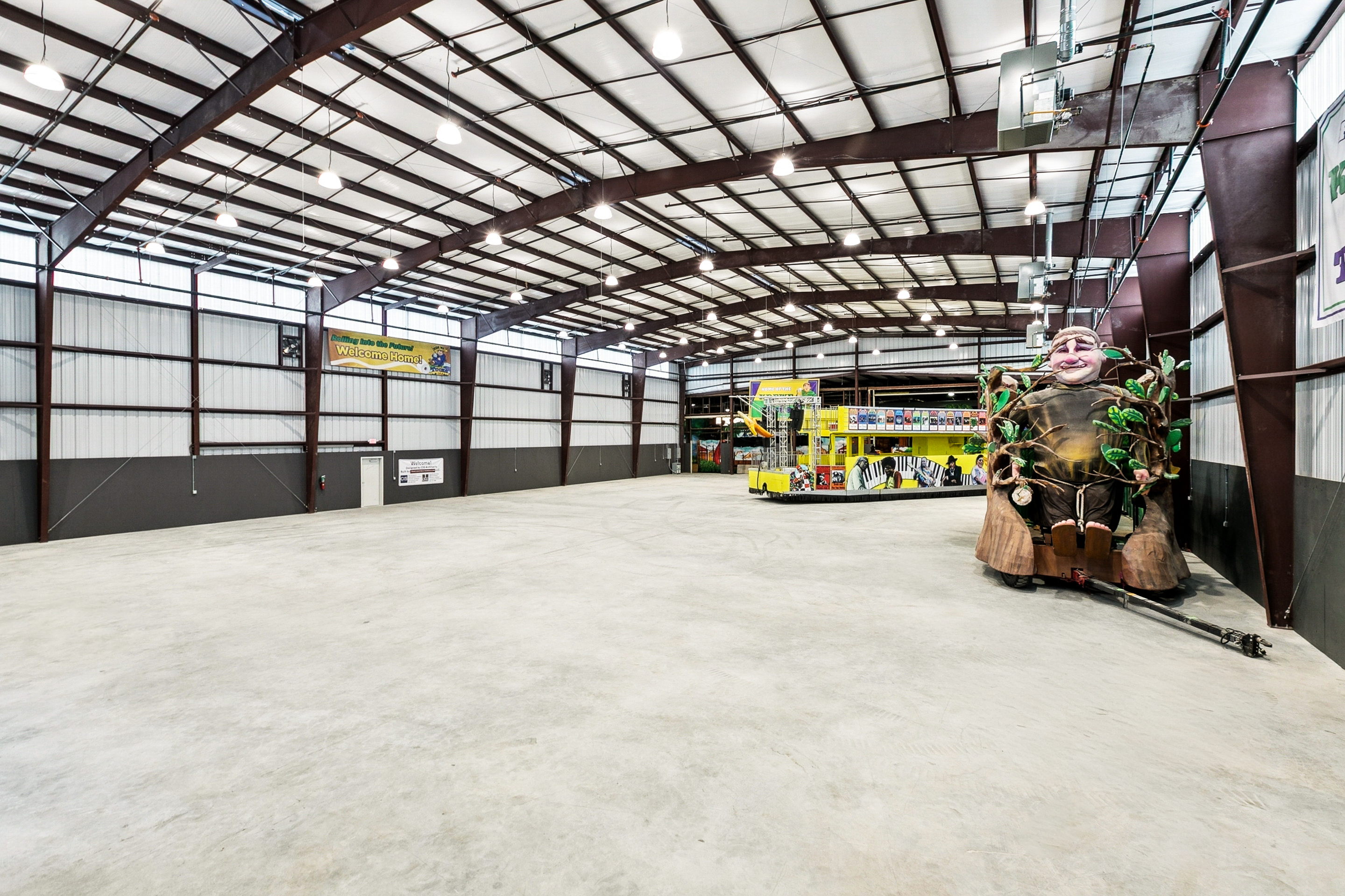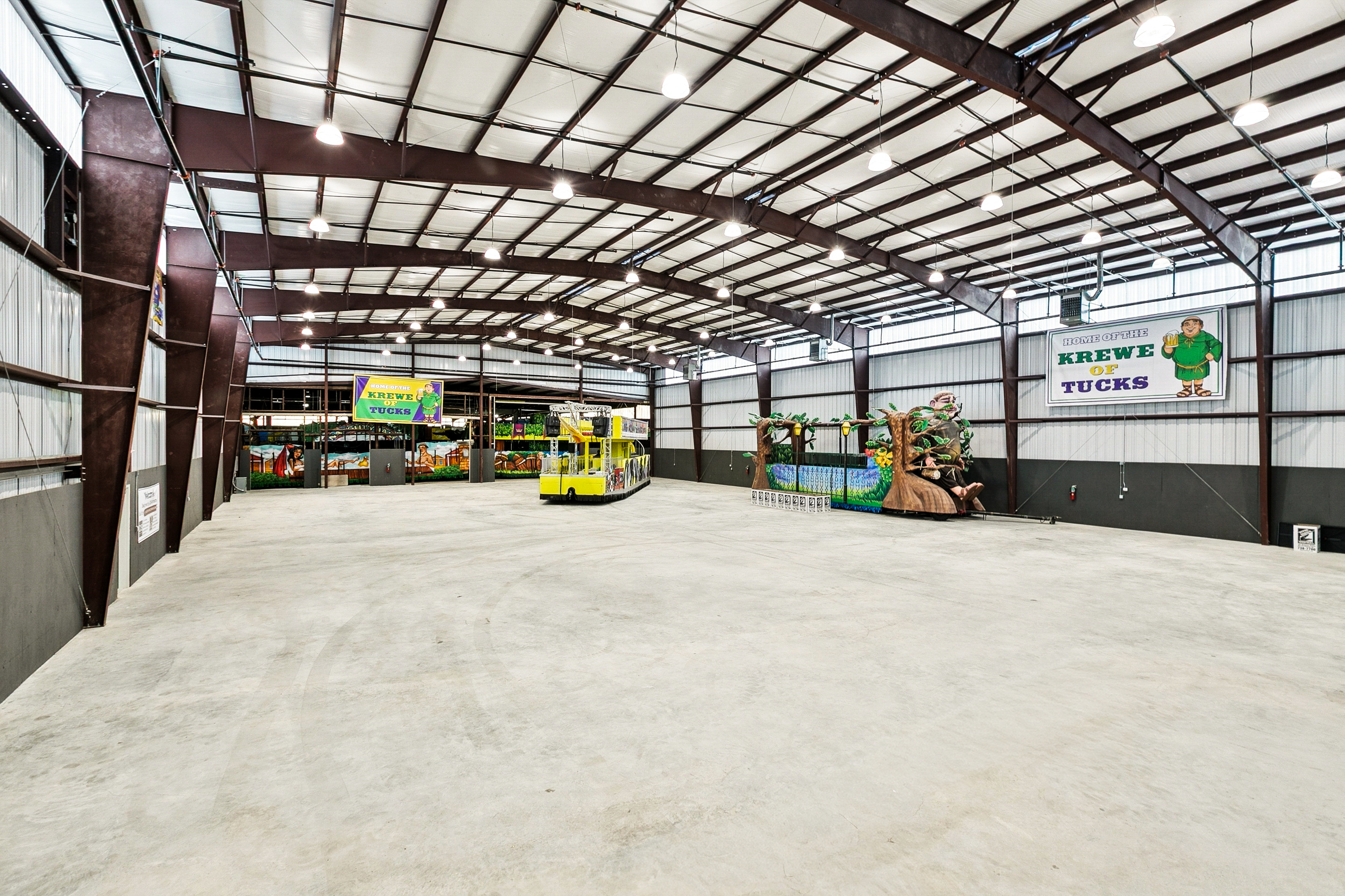 This newly completed 15,000-square-foot float den for the Krewe of Tucks at 4400 Washington Avenue represents a modern, purpose-built facility designed to support large-scale Mardi Gras float construction, storage, and operations. Built in 2025, the commercial structure features a spacious open interior with high clearances, durable concrete flooring, enhanced lighting, and wide access points to accommodate full-size floats and equipment. The project blends functionality with long-term durability, providing the Krewe of Tucks with a centralized, efficient home for float building, staging, and year-round preparations. The finished float den reflects a commitment to quality craftsmanship, smart layout design, and a construction standard suited for New Orleans’ iconic parade traditions.