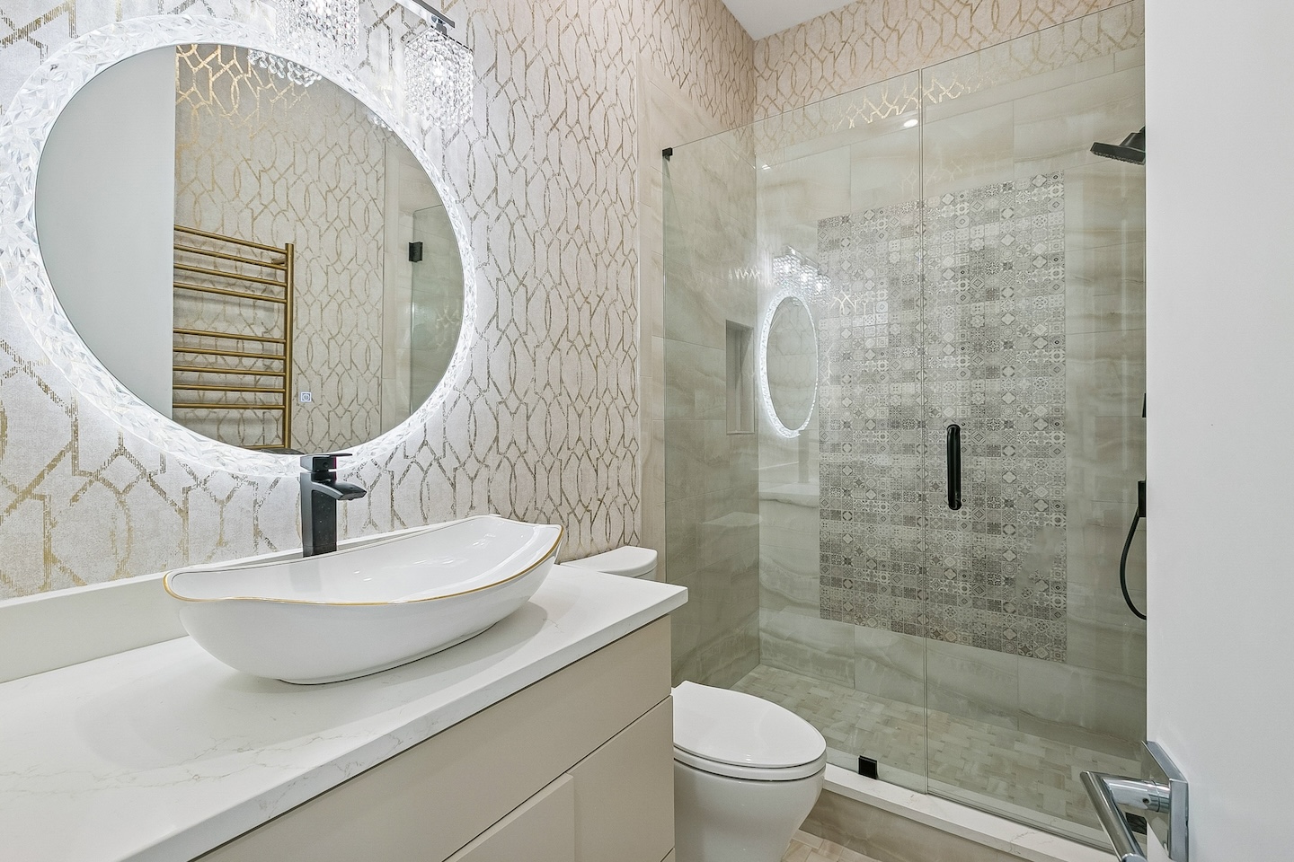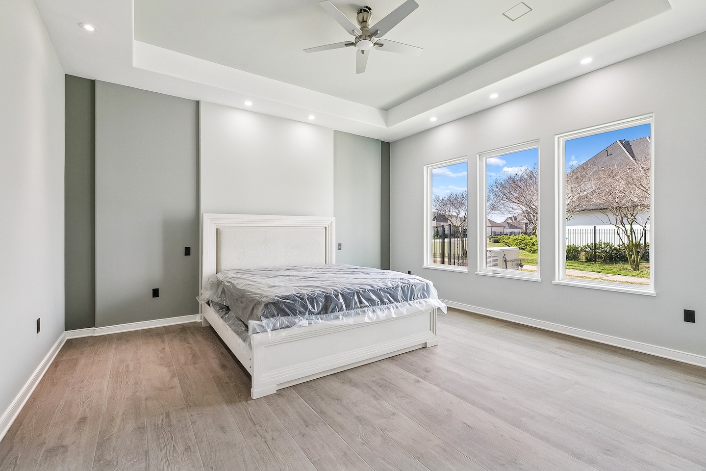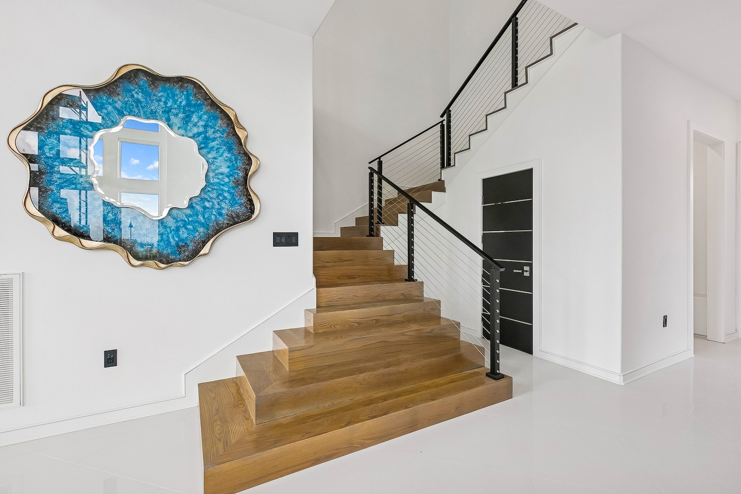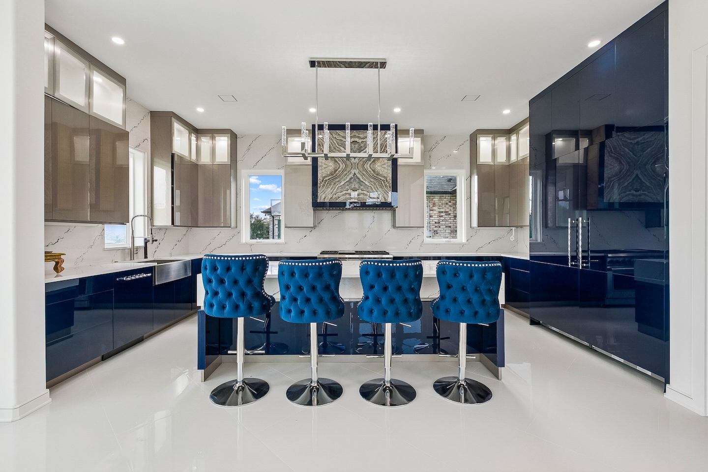 Modern features including 2 clear story window walls, ultra white smooth stucco & full length glass front doors Interior: Features modern wall designed with wallpaper infills, custom sheeted cabinetry and sauna. From remodeling to new construction, One Construction can deliver your personal living taste with the latest modern conveniences.